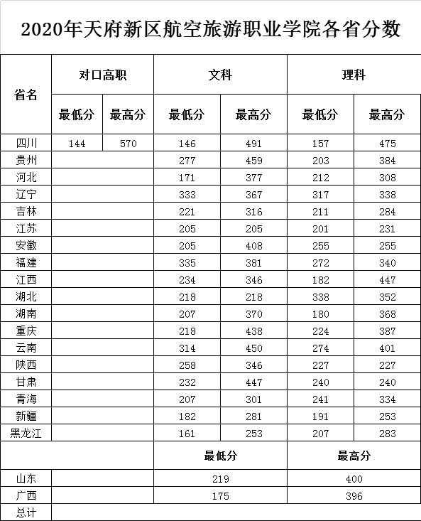 2020年天府新區(qū)航空旅游職業(yè)學(xué)院各省錄取分數(shù)