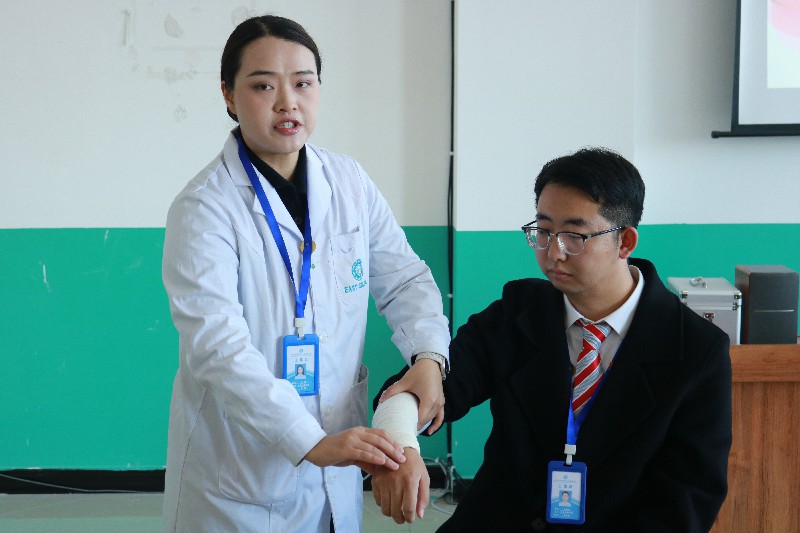 活動伊始,衛(wèi)生健康學院黨總支副書記王玲發(fā)表致辭。她指出交通運輸領域人員流動性大、突發(fā)情況較多,掌握急救技能對保障交通安全至關重要。并強調兩院聯(lián)合開展此次活動,既是專業(yè)優(yōu)勢的互補,更是責任擔當?shù)捏w現(xiàn)。希望全體參與者以“人人學急救、急救為人人”為目標,將安全意識融入日常,為構建平安校園、服務社會貢獻力量。